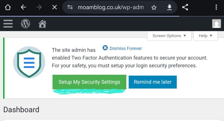 - In the MoaM Blog dashboard, look for the security pop-up.